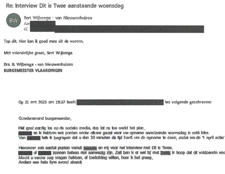 Mailverkeer tussen burgemeester Wijbenga en ambtenaar over interview