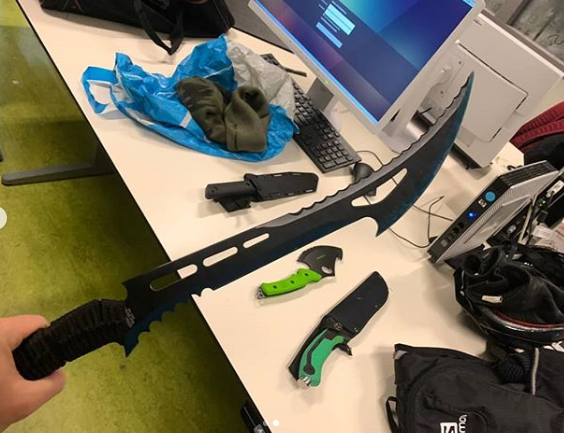 Hoofddorp, Amstelveen, Drachten, Hoorn... ik zal vast nog wel een paar verschrikkelijke incidenten vergeten waarbij het de afgelopen tijd ernstig mis ging met jongeren en een mes... vanmiddag hebben collega's van Politie Amsterdam Zuid-Buitenveldert een aantal jongeren aangehouden na een melding van een straatroof. U ziet hier het wapen arsenaal van de verdachten... leeftijd gemiddeld 12-13 jaar... ik heb er geen woorden voor, u wel?