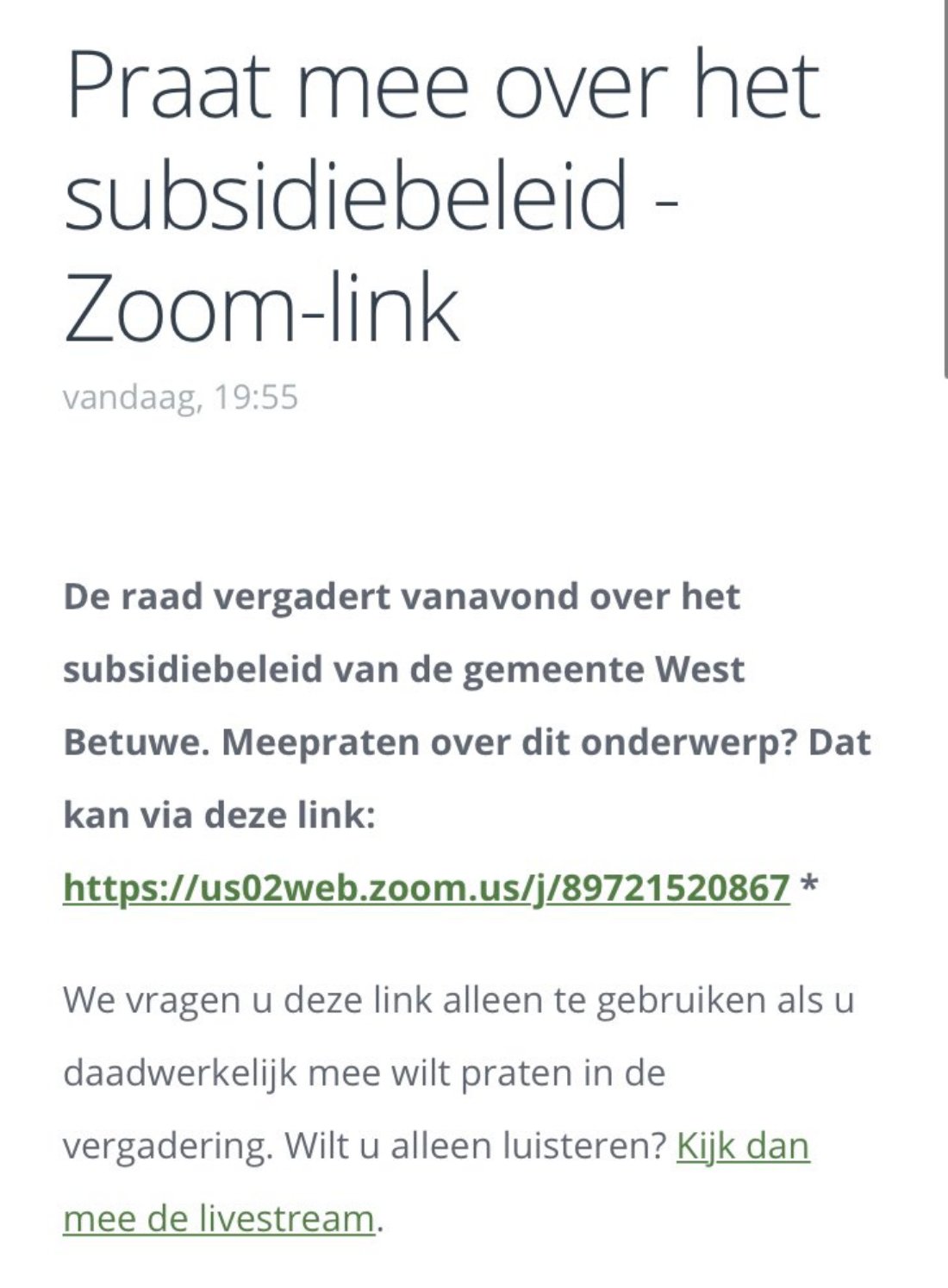 INSTANT UPDATE: De Gelderlander heeft nu zijn eigen bericht gehackt: "Het is echter waarschijnlijker dat hij ongehinderd de Zoom-meeting kon verstoren via de link die de gemeente zelf op haar website had gezet. Er zat bovendien geen wachtwoord op de vergadering." Joh.
